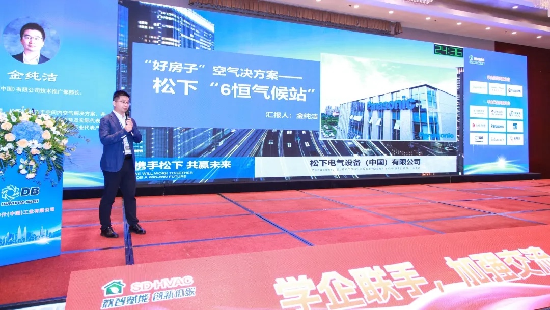 智慧空气,恒享舒适 在大会现场,松下电气设备市场营销中心技术推广部金纯洁部长发表了题为《“好房子”空气解决方案——松下6恒气候站》的主题演讲,引发了与会专家学者的广泛关注和深入讨论。