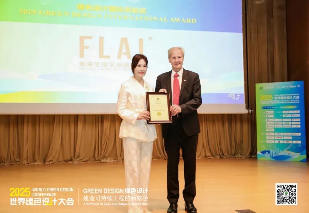 两大国际组织联合背书, 推动绿色设计成为全球工程语言 “全球健康生活环境报告”的发布获得了WELL人居实验室与世界绿色设计组织两大权威机构的深度参与与联合推荐,标志着绿色设计正从专业领域走向全球工程实践的通用语言。WELL作为全球健康建筑标准的引领者,将其评价体系从建筑单体延伸至“森林环境系统”,为健康生活环境建立了更为全面的评估框架。世界绿色设计组织在报告中强调,绿色设计不仅是技术路径,更是关乎人类健康、生态平衡与代际公平的核心策略。“全球健康生活环境报告”提出的森林环境体系,正是绿色设计赋能健康的关键实践。 会上,世界绿色设计组织举行了“绿色设计国际贡献奖”颁奖仪式,翟美卿荣获此殊荣,以表彰她及香江集团在开创香江1号及《全球可持续与健康生活环境白皮书》所代表的未来事业中展现出的远见与担当。同时,大会还为香江1号全球绿色森养基地集群举行了授牌仪式,这标志着“全球健康生活环境报告”的理念将在这一实体平台上全面落地,化为可感知、可体验的“139健康生活体系”,为大脑构建长期友好的生活环境。